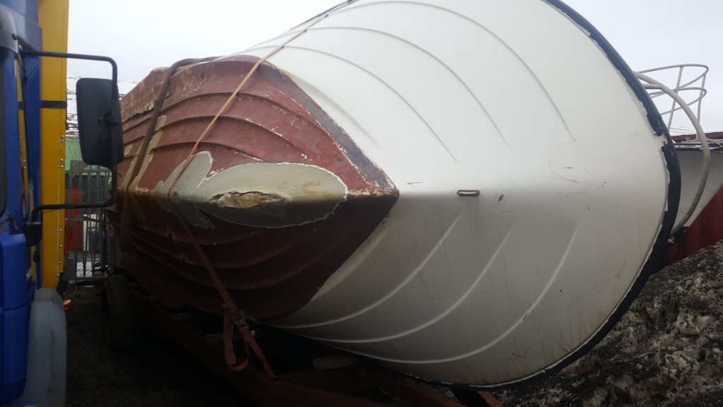 Síðustokkarnir voru hálfbrotnir af, við hentum þeim. Bátinn vantaði vél og við settum Cummins 8,3L 300 hestafla vél í hann. Svo var bara að laga skrokkinn, þá var þetta allt í áttina.