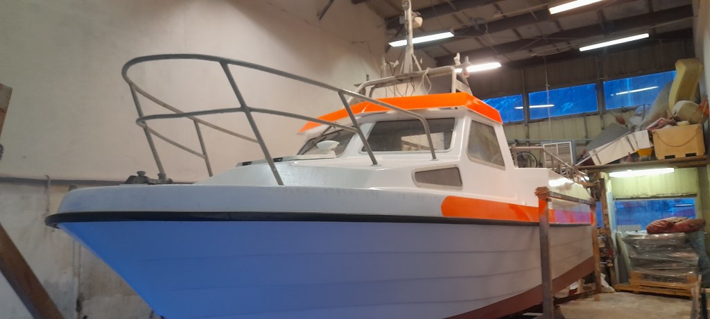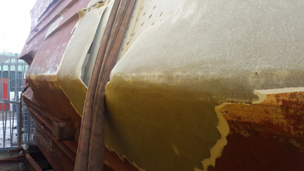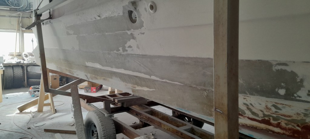 Viðgerðin á skrokk bátsins var frekar stórt verkefni. Nokkur göt voru á bátnum og þeim þurfti að loka. Báturinn var með síðustokka sem virtust illa smíðaðir og þar að auki hálfbrotnir af. Við tókum þá bara af enda draga síðustokkar úr gangi Sóma báta. Eitt enn gerðum við sem ekki sést á myndum, við breyttum öxulhallanum. þá staðreynd að báturinn gengur ca 26 mílur má að miklu leiti rekja til þeirrar breytingar. Bátinn máluðum við hátt og lágt, lagfærðum allt sem fyrir augu bar og segja má að báturinn hafi verið “tekinn í nefið”.