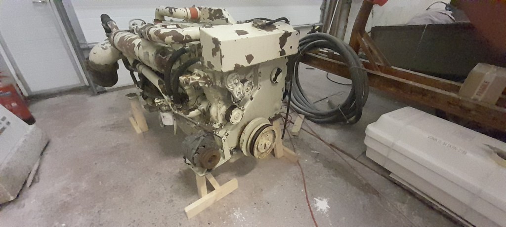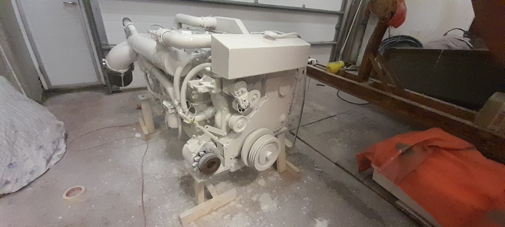 Vélina keyptum við notaða, keyrða rúma 2 þúsund tíma. Cummins 8,3L 6cta svona til að vera nákvæmur. Hún leit nú bara vel út en það sakaði ekki að mála hana fyrst. Ekki versnaði vélarrúmið við að fá málningu yfir sig líka.
